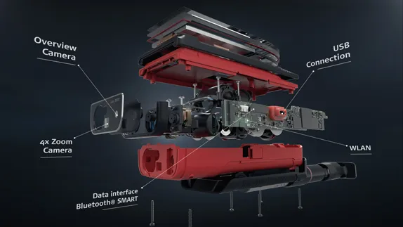 The incorporated Smart Base allows distances to be measured between any two points, inclinations and angles at the same time from a single location. You will never have to reach for remote areas again, allowing even the most complicated measurement job to be carried out accurately, quickly, and safely.